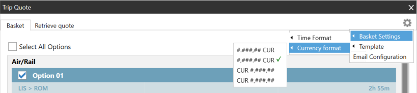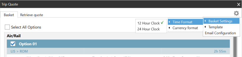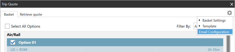 Pour modifier la configuration lorsque vous envoyez des e-mails avec Trip Quote :