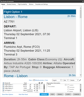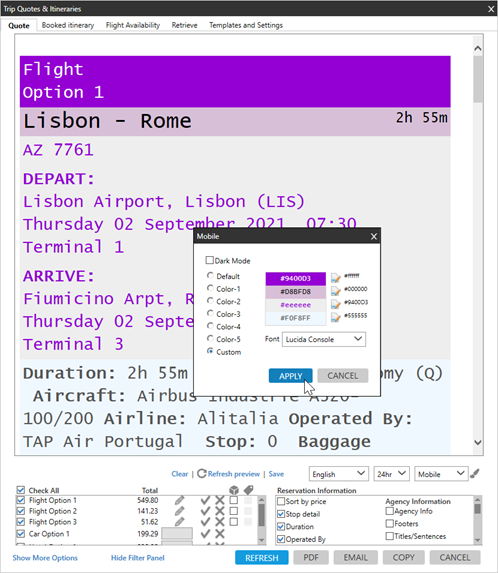 - À partir des onglets Devis, Itinéraire réservé ou Disponibilité des vols , accédez à la section Personnaliser l’affichage.
