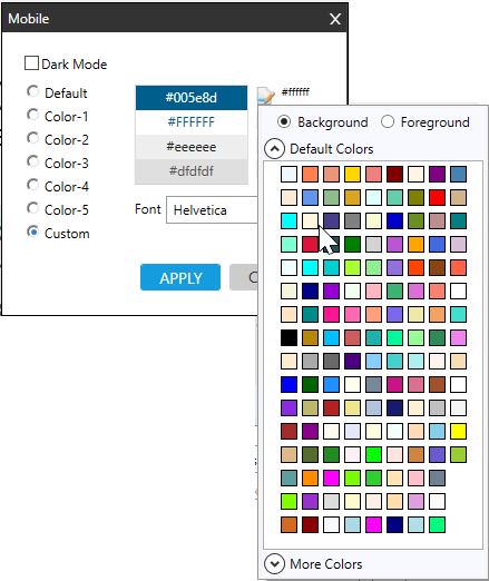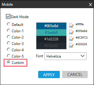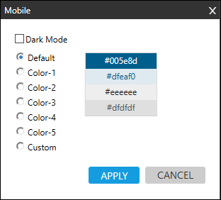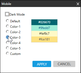 pour afficher l’écran de la palette de couleurs. Notez que l’écran s’appelle Mobile car des combinaisons de couleurs différentes peuvent être appliquées à chaque thème.