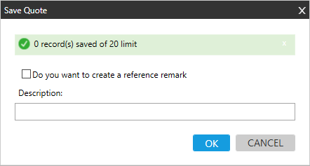 Ce numéro de référence dans la remarque peut également être utilisé par d’autres agents pour récupérer l’enregistrement enregistré. - Optionnel. Dans Description, intégrez un titre pour le devis ou l’itinéraire enregistré.