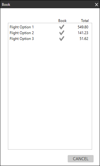 pour réserver des options de vol directement le devis enregistré. Actuellement, cette fonctionnalité n’est pas disponible pour les options de voiture ou d’hôtel.