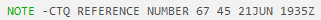 - Optionnel. Sélectionnez Voulez-vous créer une remarque de référence si vous souhaitez inclure le numéro de référence et la description en tant que remarque dans le fichier PNR/Réservation. La remarque de note affiche CTQ REFERENCE et inclut le numéro de référence attribué automatiquement à ce fichier enregistré.
