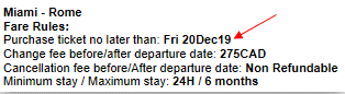 Si cette case n’est PAS cochée, la date du dernier achat du billet est incluse dans les règles tarifaires.