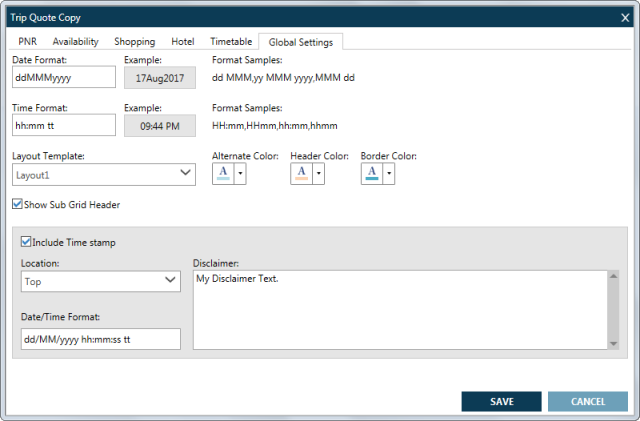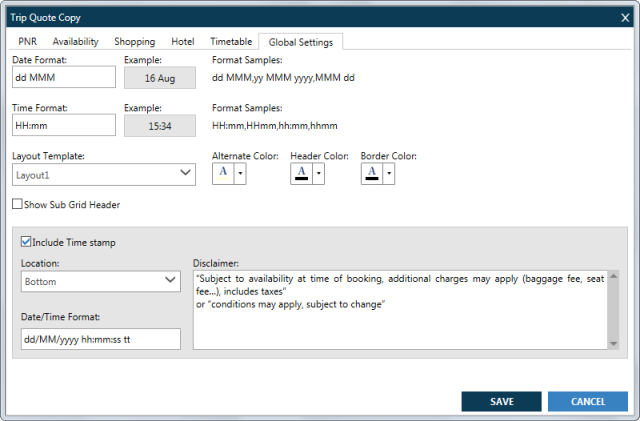 - Cliquez sur ENREGISTRER. Les modifications apportées au format du tableau, à l’horodatage et à la clause de non-responsabilité sont immédiates.