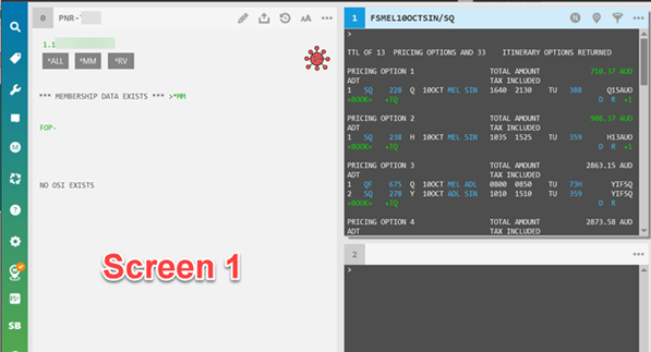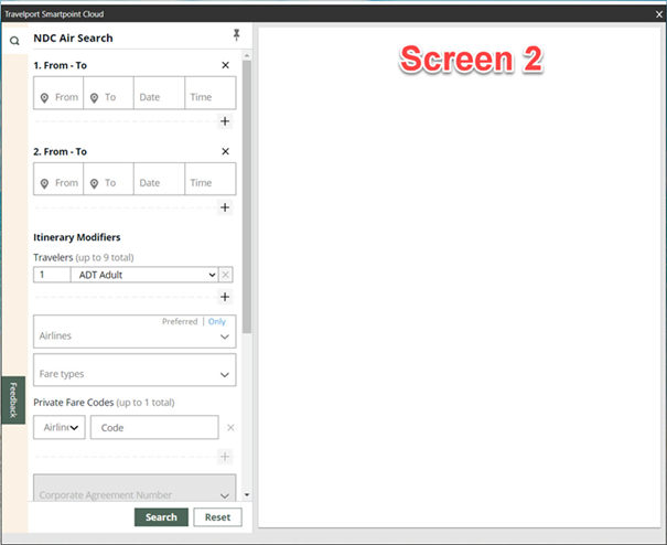 La fenêtre contextuelle du plug-in Web NDC de Travelport s’affiche sur le deuxième moniteur (écran 2).
