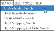 - Voir l’écran de recherche de disponibilité aérienne pour plus de détails sur l’utilisation des champs de cet écran, y compris les listes déroulantes, les icônes de calendrier et la logique des codes de ville, d’aéroport ou de station.