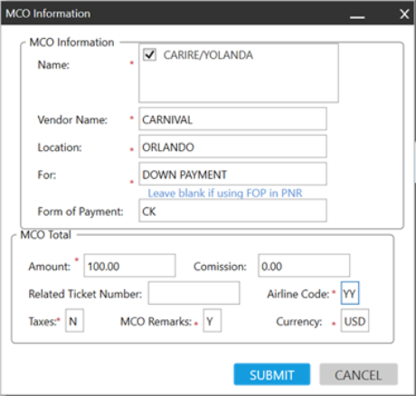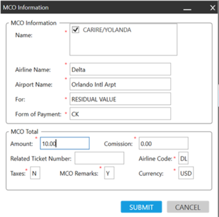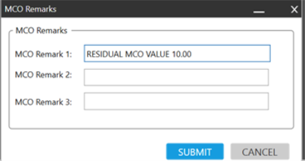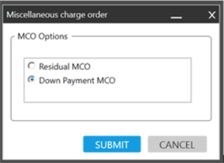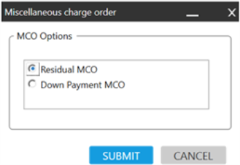 ARC uniquement. Ce bouton crée un MCO pour le résidu ou l’acompte à l’aide des options de remplissage du formulaire :