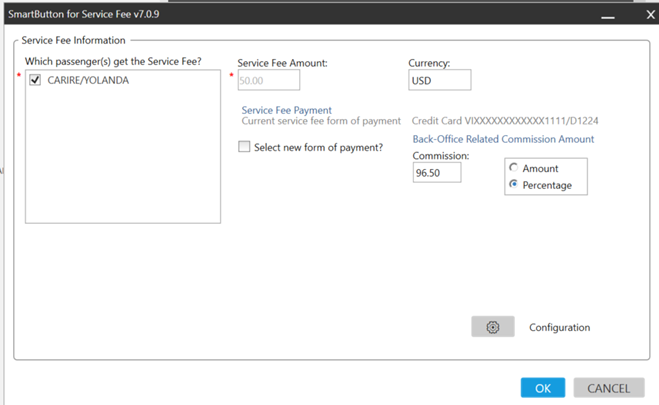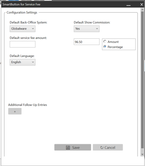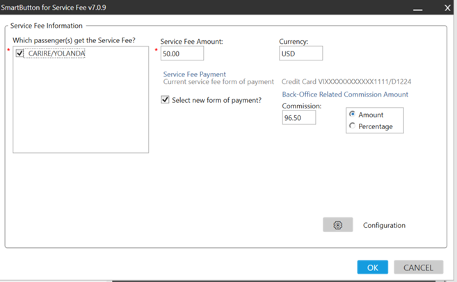 Le bouton Frais de service permet aux agents d’émettre des frais de service et de configurer les remarques pour les systèmes de back-office suivants :