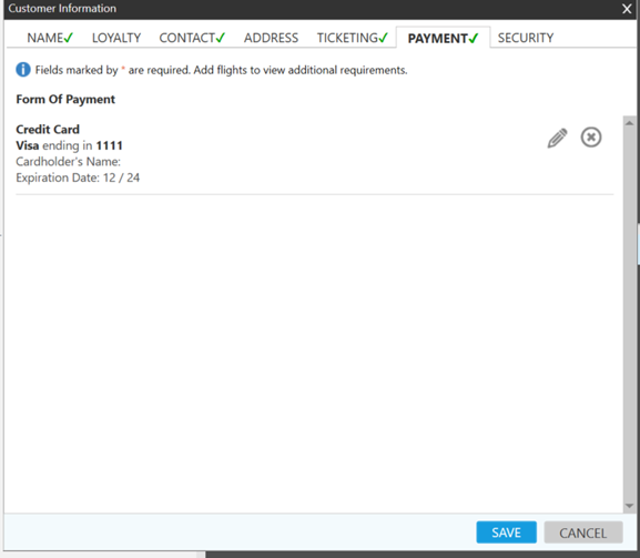 Cliquez sur le bouton Sélectionner un nouveau mode de paiement ? pour entrer les détails FOP mis à jour.