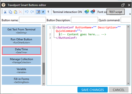 Si vous ne souhaitez pas utiliser l’éditeur de date/heure, vous pouvez saisir le code XML directement dans l’éditeur de boutons intelligents.