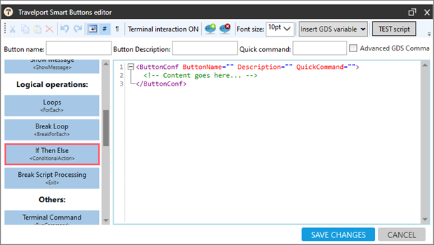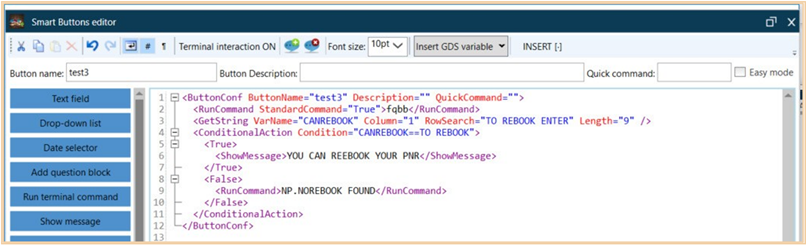 Pour configurer, entrez les éléments XML suivants directement dans l’éditeur de boutons intelligents Travelport.