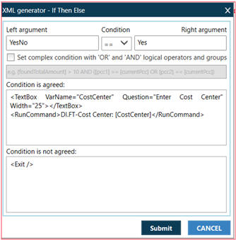 Par exemple, vous souhaitez poser une question à l’écran à l’agent : Voulez-vous ajouter un centre de coûts ?