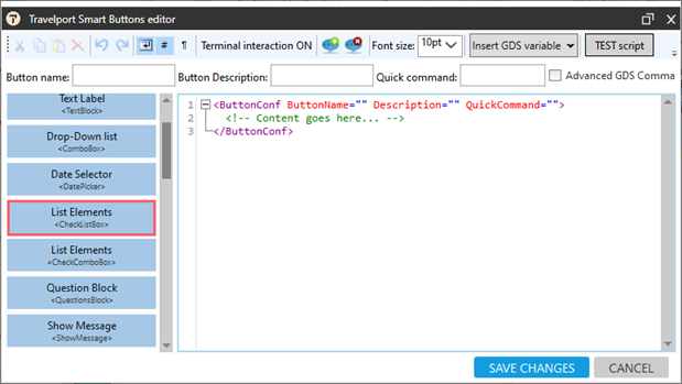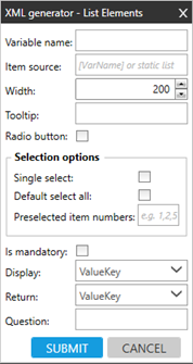 Cliquez sur ListElements <CheckListBox> pour afficher le générateur XML List Elements.