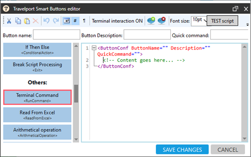 Vous pouvez configurer RunCommand dans l’éditeur de boutons intelligents à l’aide de l’éditeur de commandes de terminal ou de XML.
