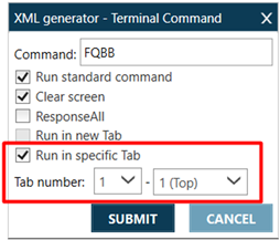 Exécuter dans un nouvel onglet Ouvre un nouvel onglet de fenêtre pour exécuter la commande. Redirige les réponses de l’hôte vers des fenêtres/onglets spécifiques.