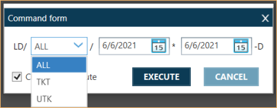 Le script suivant a été créé à l’aide du mode facile. L’agent choisit uniquement s’il doit afficher toutes les réservations ou uniquement avec ou sans billet, puis entrer la plage de dates et cliquer sur Exécuter. Les parties statiques de la commande ne sont pas modifiables, par exemple, LD/ ou -D .