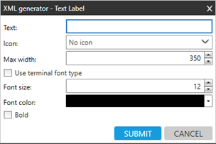 Icône Icône à afficher à l’agent mappé avec la couleur du texte : Informations (texte vert) - « i », Avertissement (texte orange) - « ! », Erreur (texte rouge) - « X » Largeur maximale Largeur maximale de la ligne de texte. Utiliser le type de police du terminal Taille de la police Sélectionnez la taille de la police, le maximum qui peut être sélectionné est de 32 Couleur de la police Sélectionnez la couleur de votre texte Audacieux Vérifiez si vous voulez que votre texte soit en gras