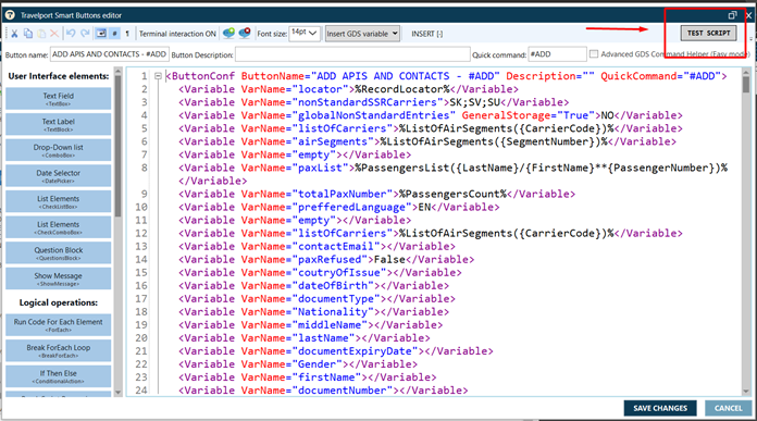 Optionnel. Pour tester (exécuter) le script, cliquez sur TESTER LE SCRIPT dans le coin supérieur droit.