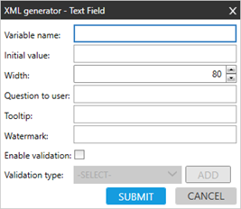 <TextBox Watermark="" VarName="CompanyName" Question="What is the Company Name?" Width="80" ToolTip="" />