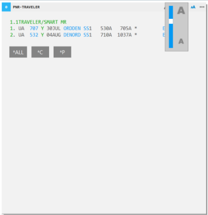 Modifiez la taille de la police de la fenêtre PNR. Lorsque vous modifiez la taille dans les fenêtres classiques et les fenêtres flexibles, votre paramètre reste si vous changez de disposition de fenêtre.