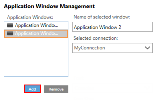 - Dans la section Gestion des fenêtres d’application, cliquez sur le bouton Ajouter pour ajouter une nouvelle fenêtre d’application.
