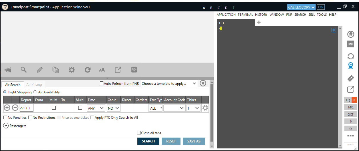 Classic Windows est le thème par défaut pour les dispositions de fenêtre dans Travelport Smartpoint.