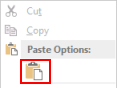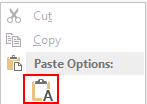 - Cliquez avec le bouton droit de la souris dans votre e-mail ou document pour sélectionner Options de collage, puis sélectionnez l’icône Conserver le texte uniquement .
