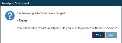 - Cliquez sur Oui pour confirmer les nouveaux paramètres et redémarrer immédiatement Smartpoint. Si vous cliquez sur Non, Flex Windows ne s’affichera pas jusqu’au prochain redémarrage de Smartpoint.