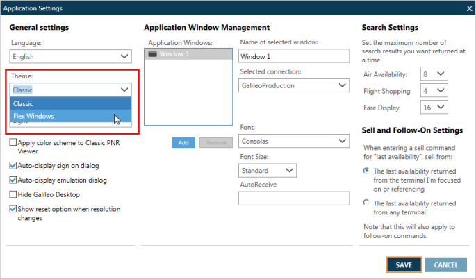 - Dans la section Paramètres généraux, cliquez sur la flèche Thème et sélectionnez Flex Windows.