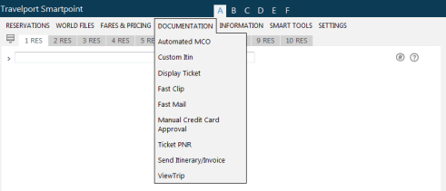 Allows you to print, fax, or e-mail itineraries to customers. These itineraries may also include select ticketing information provided by the Document History. |