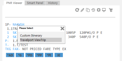 - Click the PNR record locator in the PNR Viewer and select Travelport ViewTrip from the pop-up box.