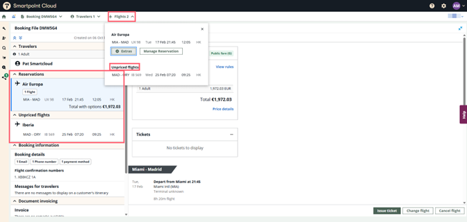 The segments are listed in the Reservations section. Those that were not quoted are shown under Unpriced flights.