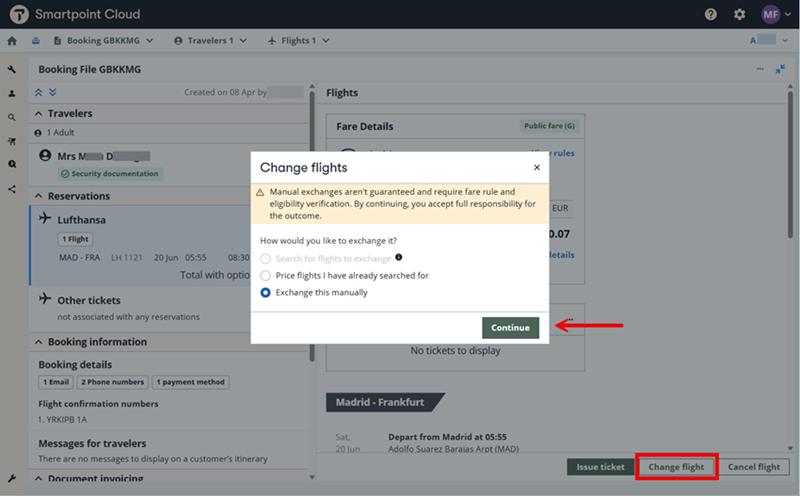 Traditional (GDS) bookings can be manually exchanged using a graphical interface if they meet the conditions for manual exchange.