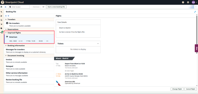 When you sell a flight, you create an itinerary – one of the mandatory parts of a booking file. You can display the booking file at any time during the selling process.