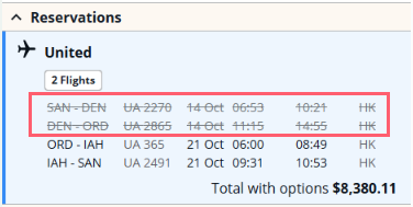 The segments are listed in the Reservations section. Those that were not quoted are shown under Unpriced flights.